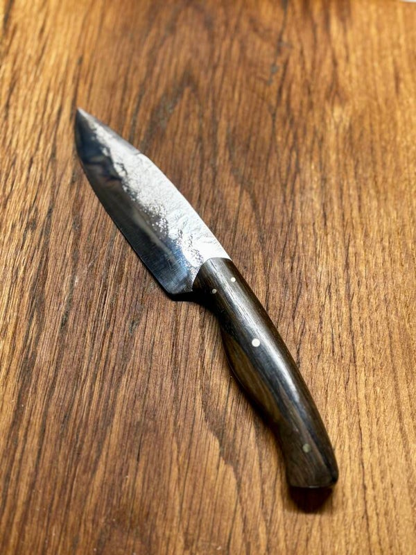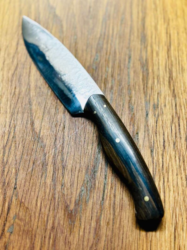 🔪 Couteau Fixe en Acier au Carbone – Lame Martelée & Manche en Bois de Ziricote