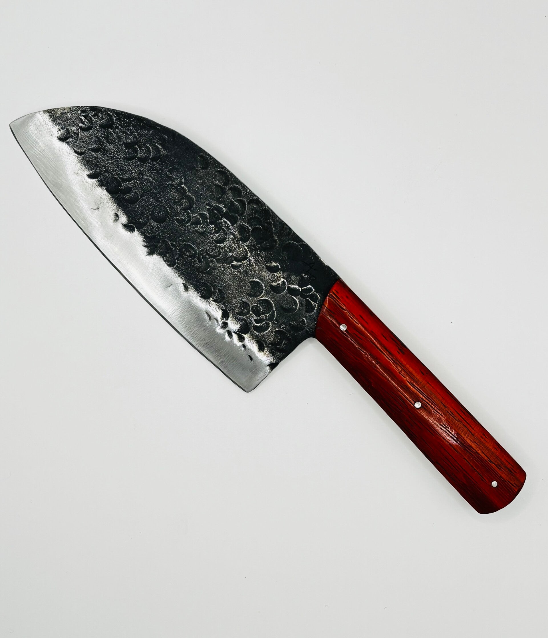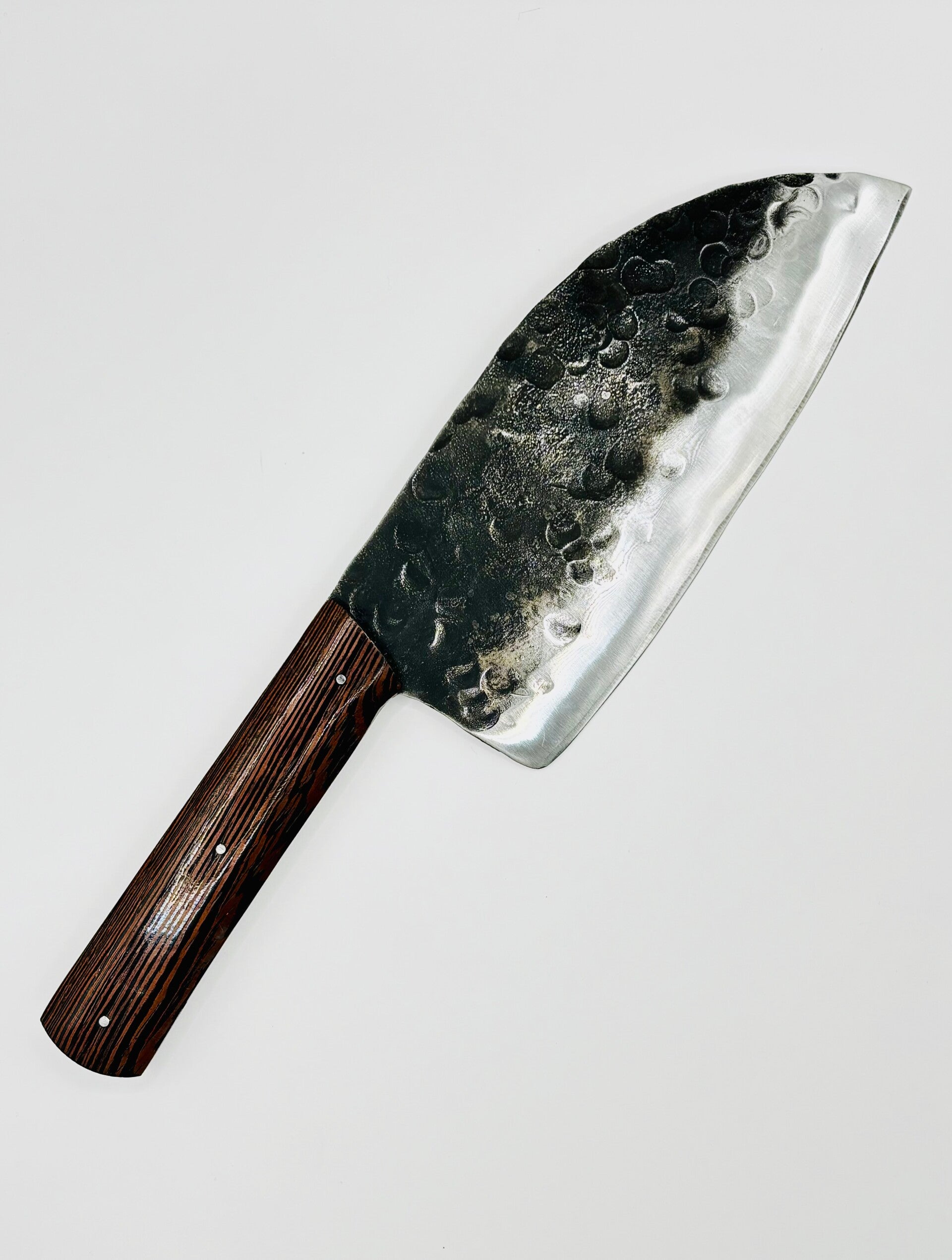 Cette feuille de boucher est entièrement forgée à la main dans mon atelier, selon un savoir-faire artisanal traditionnel. Pensée pour les travaux exigeants, elle se distingue par sa lame large, haute et puissante, idéale pour la découpe de pièces de viande, le hachage, l’écrasement et le travail précis sur de grandes surfaces.