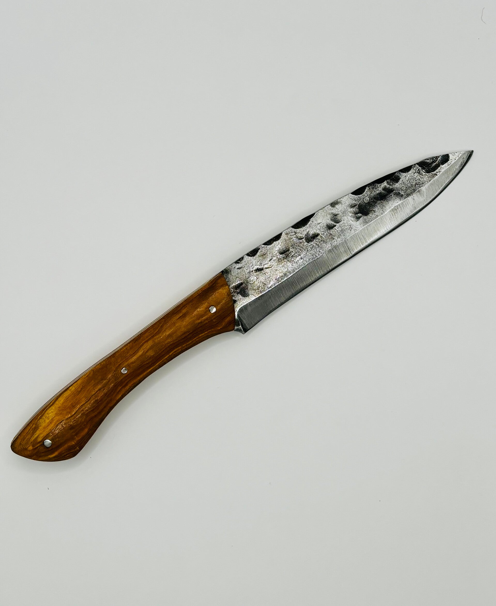 Ce couteau utilitaire est entièrement forgé à la main dans mon atelier, selon un savoir-faire artisanal exigeant. Polyvalent par nature, il est conçu pour accompagner les gestes du quotidien en cuisine : découpe de fruits et légumes, préparation de viandes, finitions et travaux de précision.